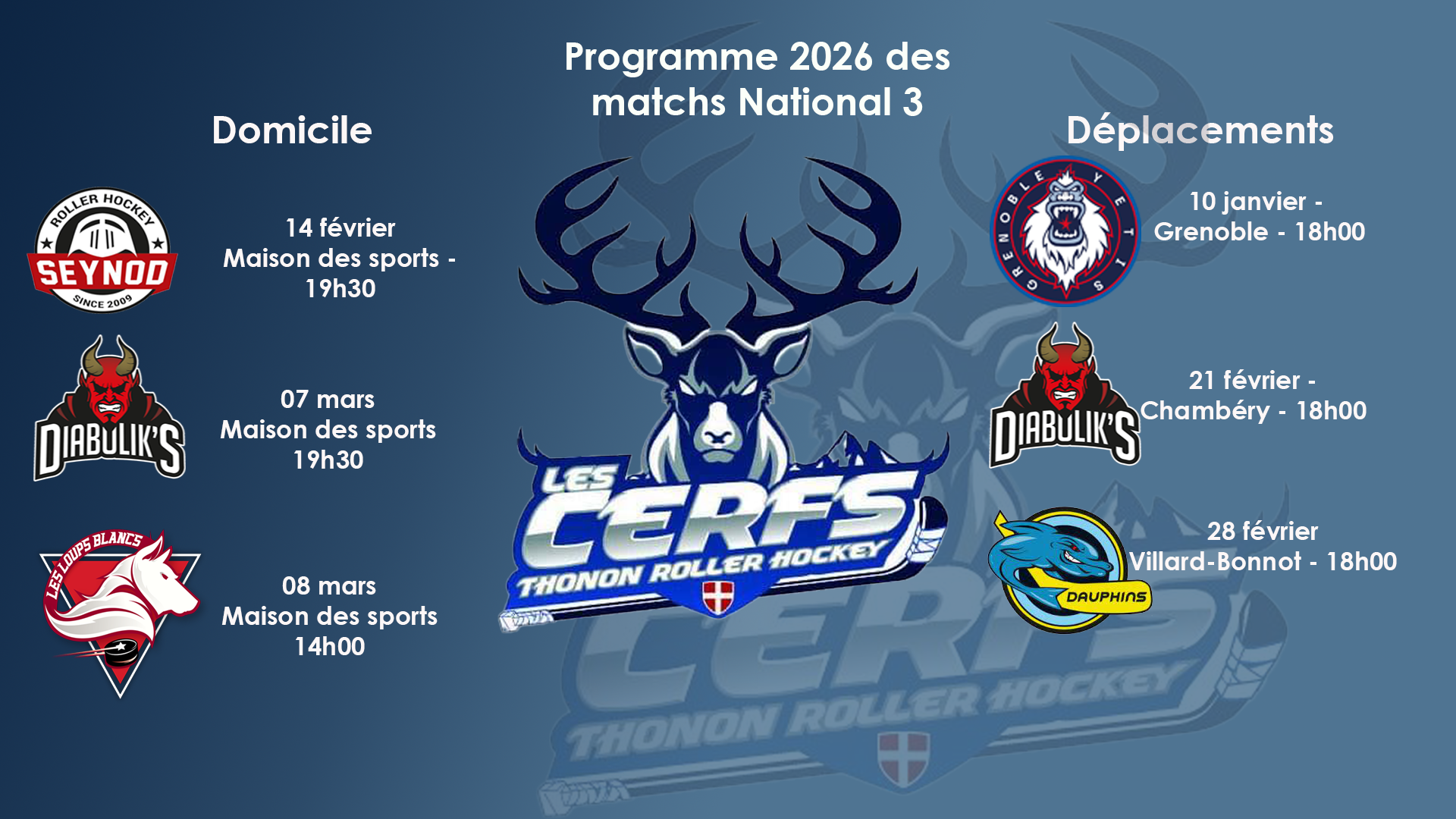 Vivez toute la saison : découvrez ici l’ensemble de nos matchs, à domicile et en déplacement.
